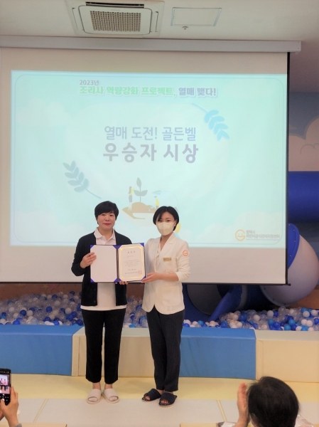 2부 순서로 진행된 ‘열매도전 골든벨 퀴즈대회’에서 어린이급식소의 위생·안전 관리 기준을 명확히 인지해 가장 많은 문제를 맞춘 조리사에게 센터장상을 수여했다.