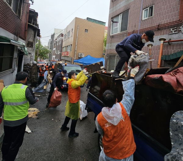 [금요저널] 인천시 중구 도원동 행정복지센터는 지난 18일 인천소방본부와 함께 주택화재로 어려움을 겪는 주민을 대상으로 피해복구 지원 활동을 벌였다.