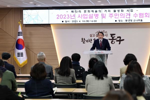 [금요저널] 인천 동구는 지난 18일 구청 대강당에서 배다리 문화·예술의 거리 활성화를 위한 사업 설명회를 개최했다.