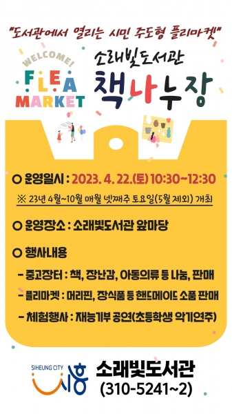 소래빛도서관 관계자는 “전 세대가 이용하는 시설인 도서관이 지식정보문화의 공간에서 더 나아가 마을 축제의 장으로서 플리마켓이 활성화될 수 있도록 아낌없이 지원할 예정이다.