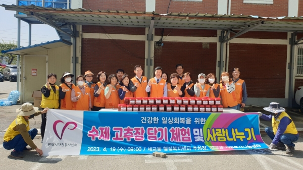 행사를 주관한 세교동 자원봉사나눔센터 채석순 센터장은 “어려운 가구에 조금이나마 힘이 되길 바라는 마음으로 수제 고추장을 나눠드리는 행사를 추진했고 자원봉사 의미에 대해 다시 한번 생각하는 기회가 됐다”고 밝혔다.