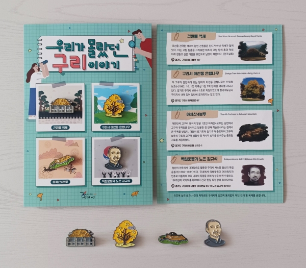 교육 자료에는 건원릉에 잔디가 아닌 억새가 심어진 사연과 산림청 기록상 1,200년 된 구리시 보호수인 아천동 은행나무, 대한민국 고구려 유적지 발굴 1호인 아차산4보루, 구리 사노동 출신의 독립운동가 노은 김규식 선생의 업적을 알리는 내용이 담겨있다.
