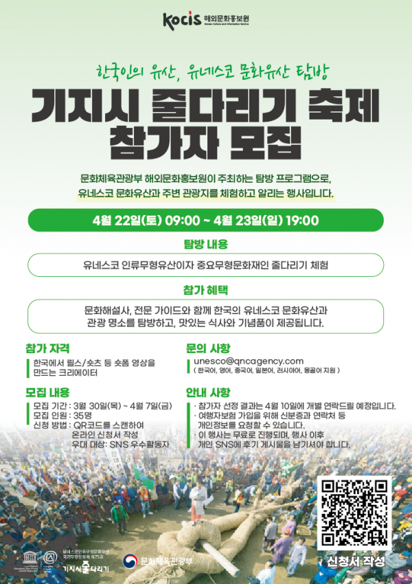또한 한국 전통 줄다리기 관련 퀴즈, 줄다리기 행사 관련 짧은 영상 제작 등 여러 가지 미션을 수행하면서 한국 고유문화를 더욱 깊이 알아갈 예정이다.