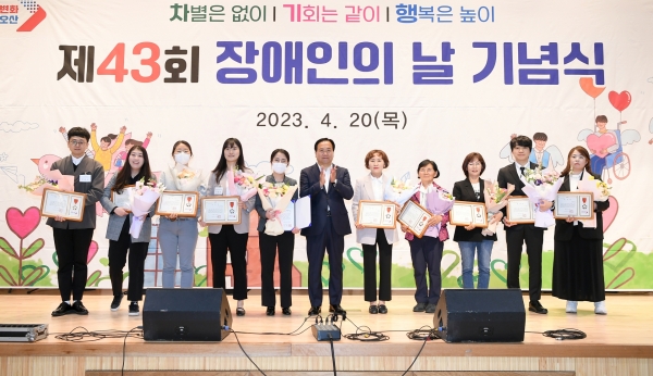 [금요저널] 오산시는 20일 오산오색문화체육센터에서 장애인단체 관계자들을 비롯해 이권재 오산시장, 성길용 오산시의회의장, 도의원, 시의원 등이 참석한 가운데 제43회 장애인의 날 기념식을 개최했다.