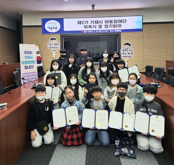 [금요저널] 거제시는 지난 22일 시청 중회의실에서 제2기 거제시 아동참여단 19명이 참석한 가운데 위촉식 및 정기회의를 개최했다.
