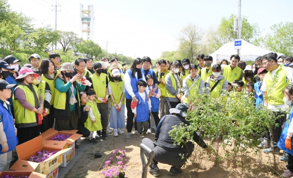 행사에 앞서 환경운동연합 관계자가 기후변화의 심각성과 탄소중립의 중요성을 알리는 행사 취지와 식재 방법 등을 설명한 후 참여자들은 구역별로 나누어 공조팝 1천800주와 함께 꽃잔디 4천500본을 각각 식재했다.
