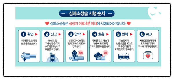 또한 심정지 환자의 경우 약 60%가 가정에서 발생하는 만큼 일반인에 대한 심폐소생술 교육이 중요하다.