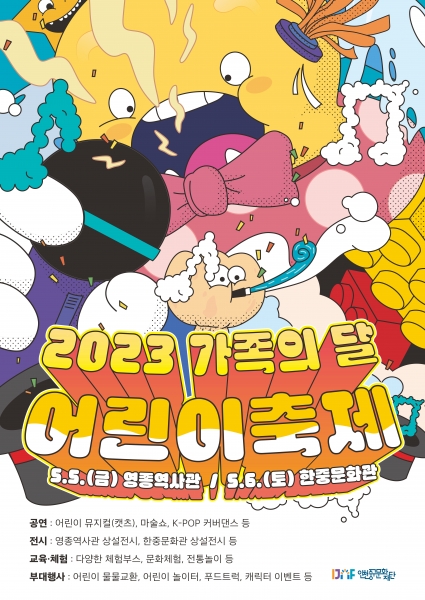 어린이날을 맞아 열리는 이번 ‘2023 가족의 달, 어린이 축제’는 5일 중산동 소재 영종역사관, 6일 항동 소재 한중문화관에서 나눠 진행되며 공연, 체험, 전시, 이벤트 등 다채로운 프로그램들이 펼쳐질 예정이다.