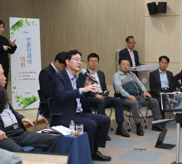 이번 행사는 26일 시청 대회의실에서 언론인 130여명이 참석한 가운데 격의 없는 대화가 오고 가는 방식으로 진행됐으며 민선8기 출범 이후 성과와 현안, 핵심사업 추진 계획 등에 대한 소통이 이뤄졌다.
