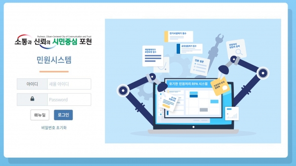 전국 지자체 최초로 개발한 포천시 ‘내민원 알림톡 서비스’는 유기한 민원처리를 위한 로봇 업무자동화시스템을 적용한 것으로 혁신적인 행정서비스를 통해 민원 만족도와 행정 청렴도를 높이려는 포천시의 대응 전략 중 하나다.