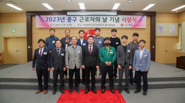 인천시 중구는 지난 26일 오후 중구청 월디관 대회의실에서 김정헌 구청장, 근로자, 노동조합 간부, 기업체 대표 등이 참석한 가운데 ‘2023년 중구 근로자의 날 기념 시상식’을 개최했다.
