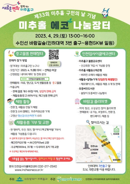 미추홀구, 제33회 미추홀구 구민의 날 기념 ‘미추홀 에코 나눔장터’ 개최