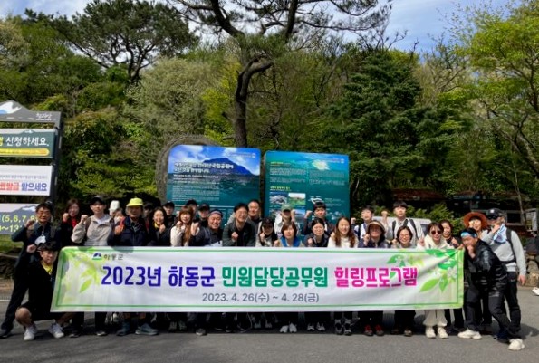 [금요저널] 하동군은 지난 26∼28일 2박 3일간 제주도 일원에서 직원 35명을 대상으로 감정노동 스트레스 해소를 위한 ‘2023년 민원담당공무원 힐링 프로그램’을 운영했다고 28일 밝혔다.