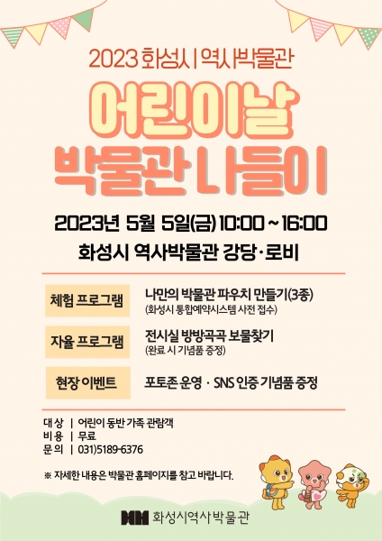 화성시 역사박물관, 어린이날 기념 무료 체험프로그램 운영