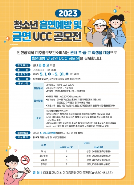 미추홀구보건소, 청소년 흡연 예방 및 금연 UCC 아이디어 공모전 개최
