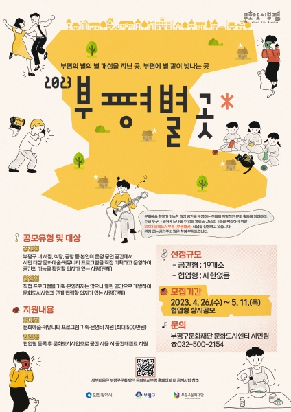 자세한 사항은 문화도시부평 누리집을 확인하거나 문화도시센터 시민팀으로 문의하면 된다.