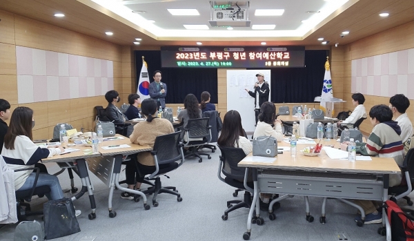 [금요저널] 부평구는 지난 27일 구청 중회의실에서 부평구 청년 19명을 대상으로 2023년 청년 참여예산학교를 진행했다.