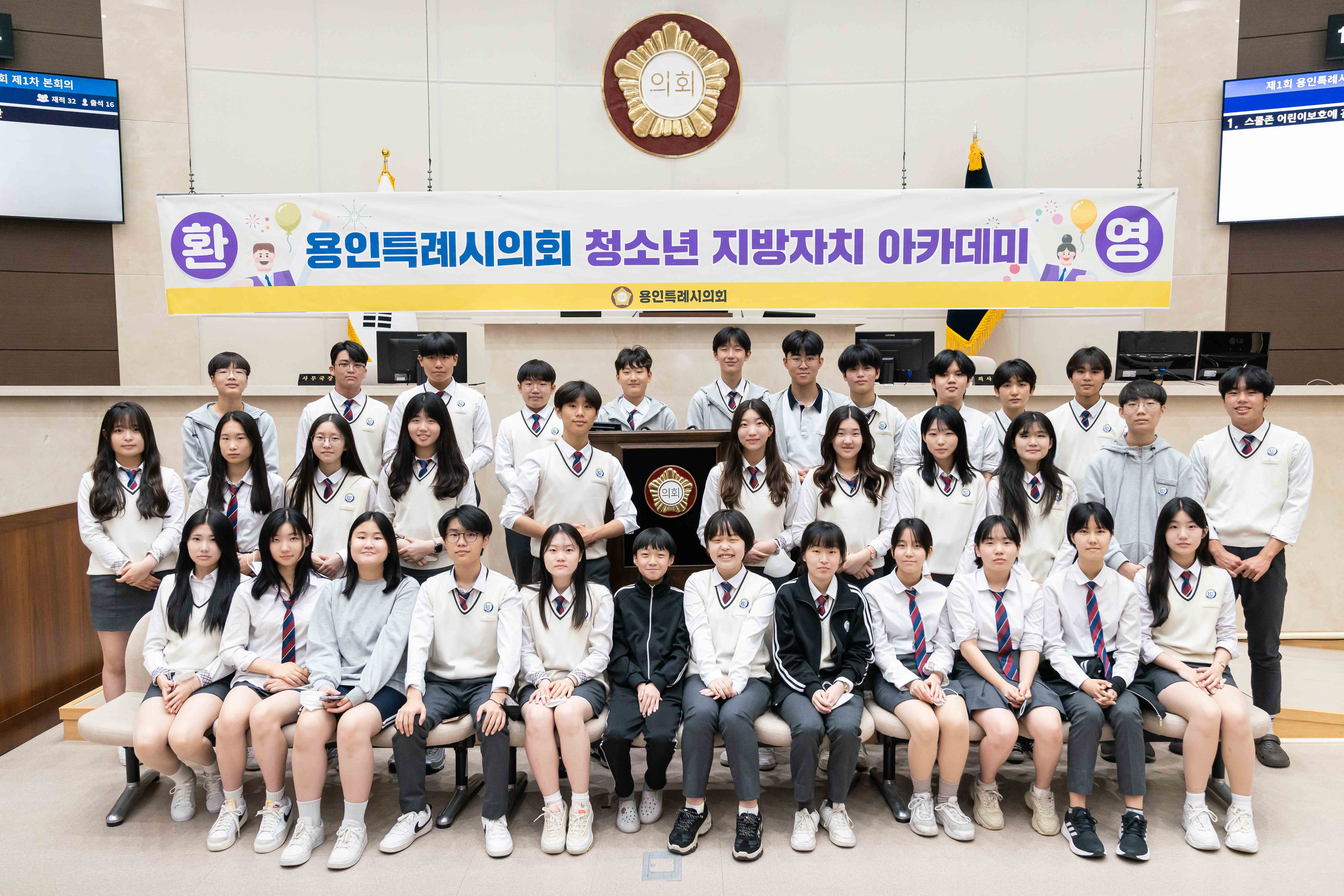 한편, 용인특례시의회 청소년 지방자치아카데미는 용인시 관내 초·중·고등학생 및 청소년 구성 단체를 대상으로 의회 체험 기회를 제공하여, 대의제 민주주의 및 지방자치 제도에 대한 이해를 높이고 의회의 기능과 역할에 대한 중요성을 일깨우고 있다.