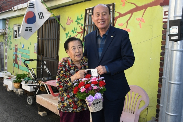 특히 올해는 박형덕 동두천시장이 노인맞춤돌봄서비스 대상자 중 최고령자인 이 어르신 댁을 방문해 카네이션 꽃바구니를 손수 전달하고 어르신의 건강과 장수를 기원했다.