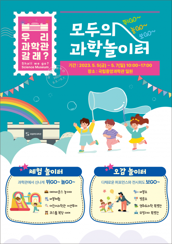 [금요저널] 국립중앙과학관은 어린이날을 맞아 ‘뛰고 놀고 보고 모두의 과학놀이터’행사를 5월 5일부터 7일까지 중앙 광장과 어린이 과학관에서 개최한다.