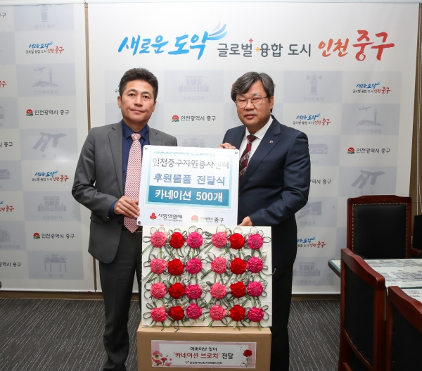 인천중구자원봉사센터, 어버이날 맞아 중구에 카네이션 선물 전달