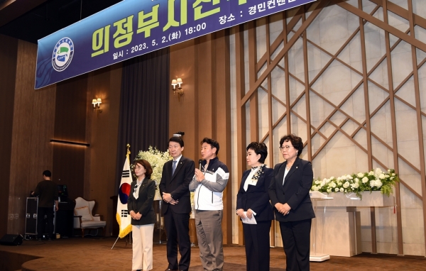 이날 결단식에는 의정부시장을 비롯한 지역구 국회의원, 시의회 의장, 경기도의원 및 시의원과 체육회 임직원 및 종목별 대표 선수단 등이 참석했다.
