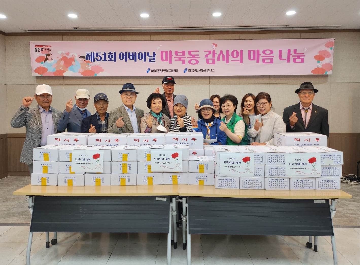 ▲ 기흥구 마북동 새마을부녀회(회장 임인숙) 관내 21개 경로당 떡과 편육 음식 전달