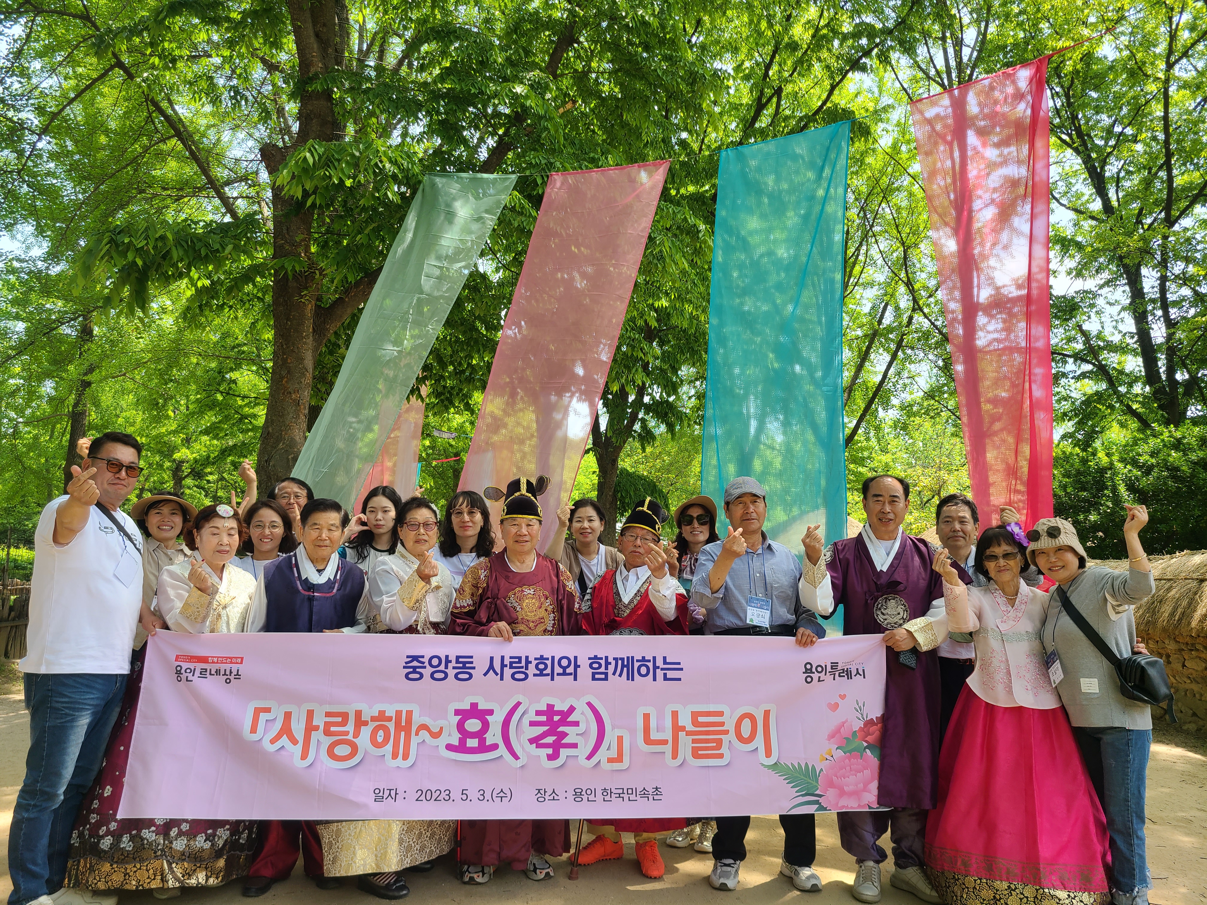 같은 날 처인구 중앙동에서는 봉사단체인 중앙동사랑회(회장 김현우)가 홀로 어르신 7명을 모시고 한국민속촌 나들이를 했다. 이날 어르신들은 옹기 만들기 체험은 물론 한복을 곱게 차려입고 사진도 찍으며 특별한 추억을 만들었다.