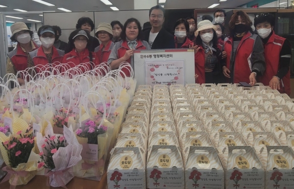 [금요저널] 인천시 남동구 만수6동 지역사회보장협의체는 5월 가정의 달을 맞아 지역 내 홀몸 어르신 80세대에 카네이션과 호두과자를 전달했다고 8일 밝혔다.