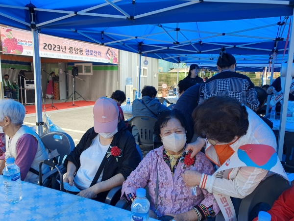 중앙동은 어버이 은혜에 감사하고 공경의 마음을 담아 정성스럽게 마련한 음식과 다과를 대접하며 어르신들에게 감사의 마음을 전했다.