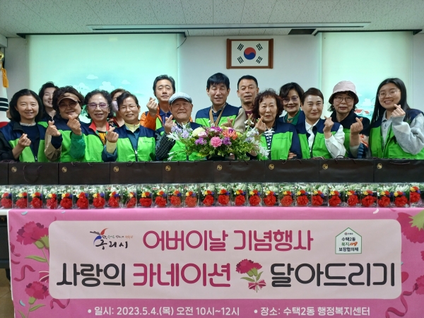 [금요저널] 구리시 수택2동 행정복지센터는 지난 4일 어버이날을 기념해 복지119보장협의체 주관으로 수택2동 독거어르신을 위한 ‘효실천, 행복나눔’카네이션 달아드리기 행사를 개최했다.