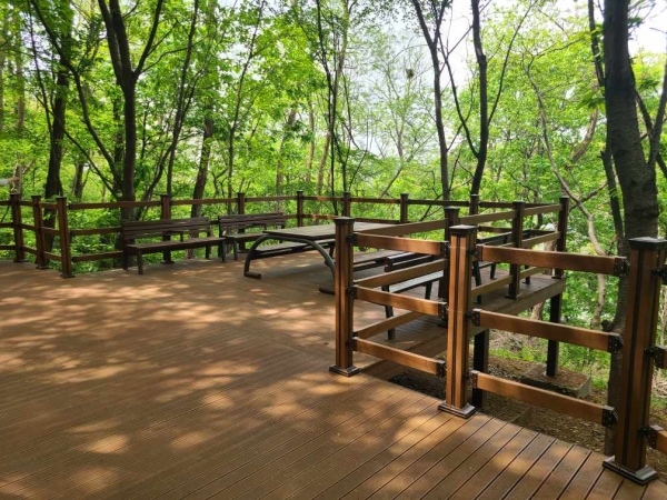 산책하는 시민들이 여유 있게 쉬어갈 수 있도록 서봉숲속공원에 1곳, 정암수목공원에 2곳의 데크 쉼터도 정비했다.