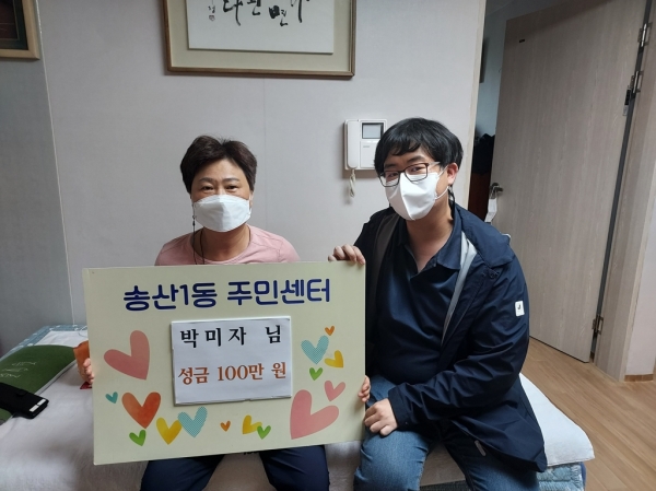[금요저널] 의정부시 송산1동 주민센터는 주민 박미자 씨가 5월 8일 ‘어려운 이웃을 돕고 싶다’며 성금 100만원을 기부했다고 밝혔다.