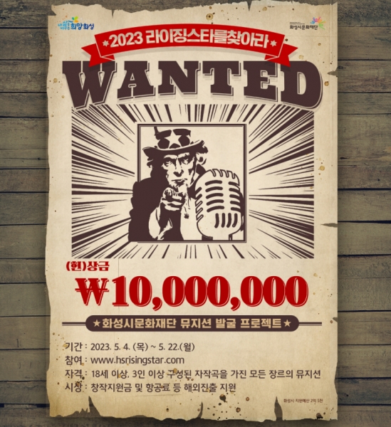 [금요저널] 화성시문화재단의 뮤지션 발굴 프로젝트 ‘2023 라이징스타를 찾아라’가 5월 4일 참여팀 모집을 시작으로 대장정의 막을 올렸다.