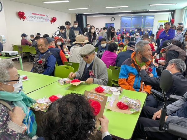 이날 효 행사를 위해 관내 ‘흰곰베이커리’와 ‘예삐플라워’에서는 케이크와 장미꽃을 후원해 줬고 ‘식쿡푸드’에서는 어버이날을 축하하며 고령 장애 어르신 30명에게 점심식사로 소머리곰탕을 제공해 줬다.