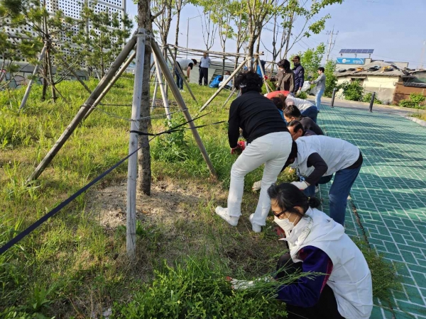 [금요저널] 동두천시 생연2동 통장협의회는 지난 9일 센트레빌 뒤 지하도 주변에 대한 환경정화 활동을 실시했다.
