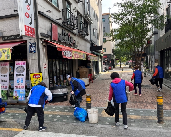 로데오거리뿐만 아니라 상업지구 골목, 잎새어린이공원 등에서도 환경정화를 실시해 도로변 화단에 방치된 일회용 플라스틱 컵, 불법전단지 등 생활 쓰레기 150L와 담배꽁초 약 1.5kg을 수거했다.