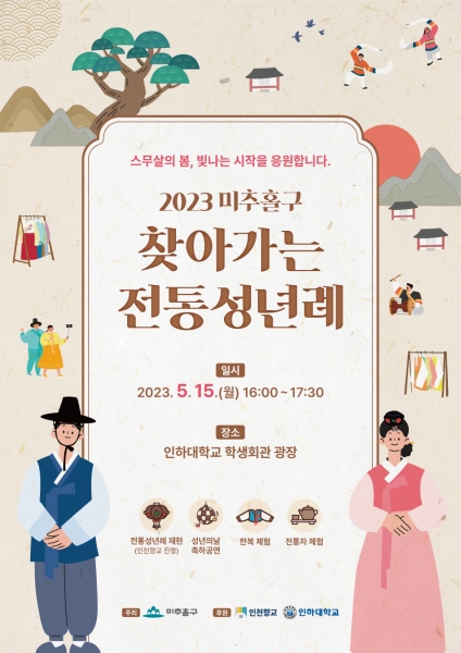 [금요저널] 인천 미추홀구는 15일 오후 4시에 인하대학교 내 학생회관 광장에서 2023년 찾아가는 전통성년례를 개최한다.