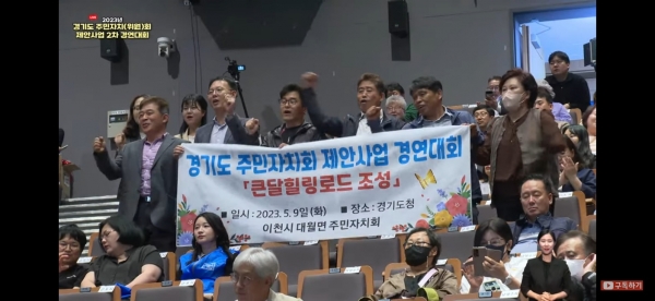 [금요저널] 9일 오후 경기도청 1층 대강당에서 열린 ‘2023년 경기도 주민자치회 제안사업 2차 경연대회’에서 이천시가 “큰달힐링로드 조성사업”으로 장려상을 수상했다.