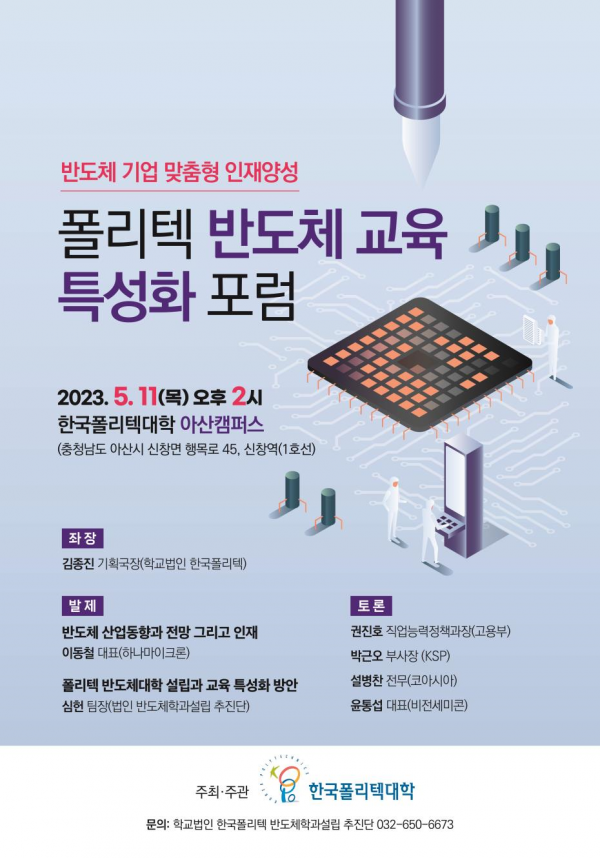 한국폴리텍대학은 11일 충남 아산캠퍼스에서 ‘반도체 기업 맞춤형 인재 양성’을 주제로 ‘반도체 교육 특성화 포럼’을 개최했다.