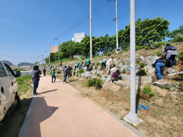 생태공원으로 지역주민들의 관심이 집중되고 있는 신천2교 하단 구간에 조팝나무 500그루를 심었다.