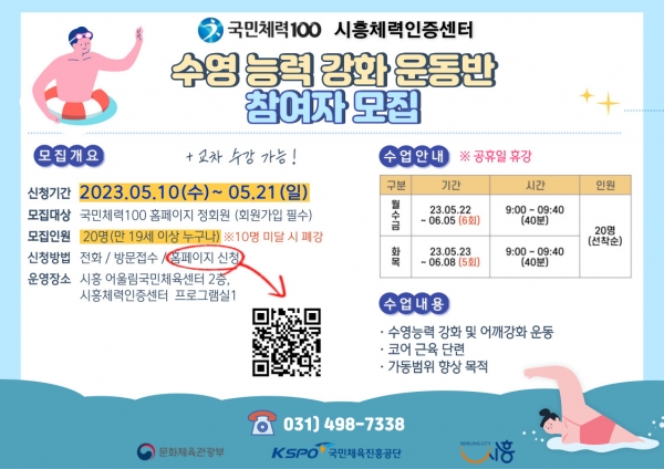 시흥체력인증센터, ‘매트필라테스’ 및 ‘수영 능력 강화’ 운동 교실 참가자 모집