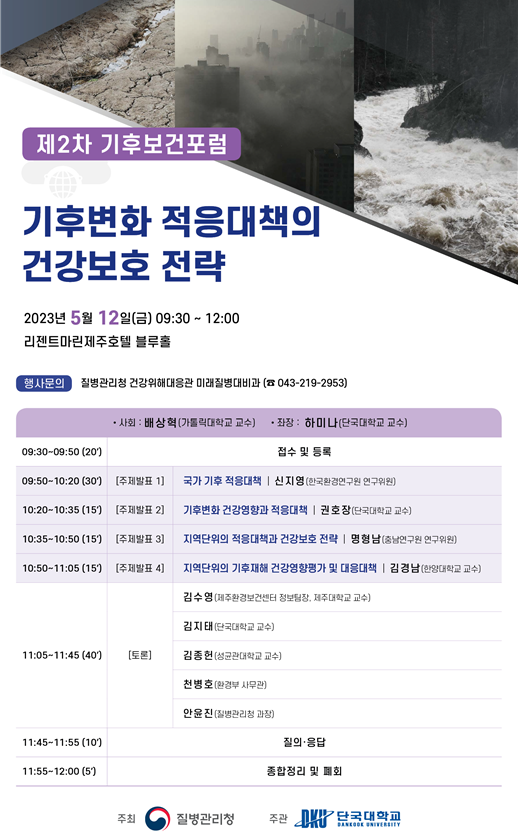 [금요저널] 질병관리청은 5월 12일 ‘기후변화 적응대책의 건강보호 전략’이라는 주제로 ‘2023년 제2차 기후보건포럼’을 개최한다.