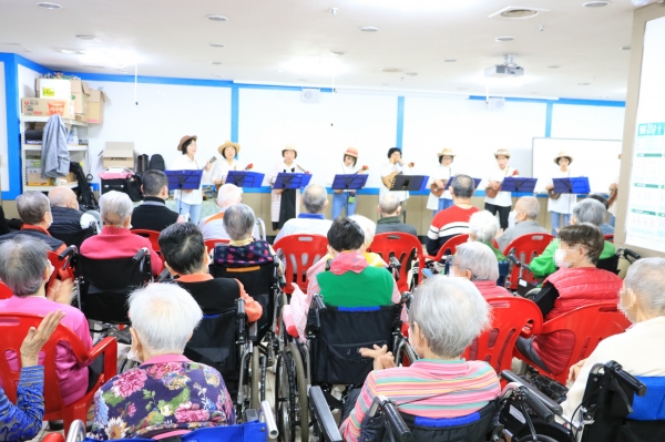 이날 재능나눔 우쿨렐레·음악치료봉사단은 그동안 갈고 닦은 우쿨렐레, 팬플루트, 하모니카, 플루트, 오카리나 등 다양한 악기 연주와 어버이날을 기념해 감사의 마음을 담은 노래와 율동을 선보여 큰 박수와 환호를 받았다.