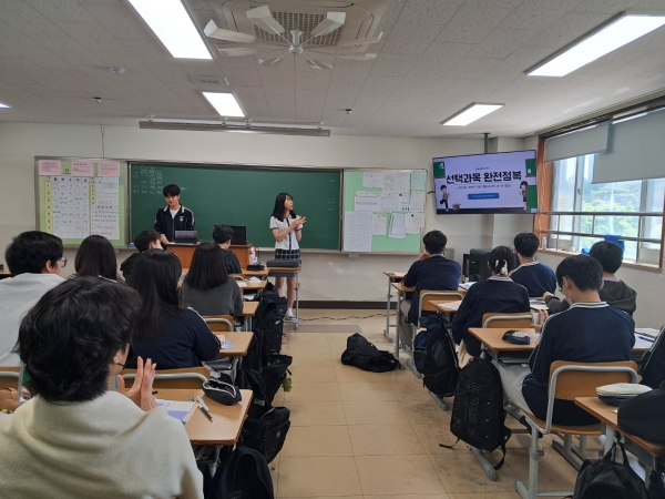 교육과정 리더단 활동은‘선배가 알려주는 선택과목’이라는 부제로 선택과목 수강 경험을 가진 2·3학년 학생 중 교육과정 리더를 모집하고 연수를 거쳐 후배들에게 설명해주는 것으로 50여명이 참여할 예정이다.