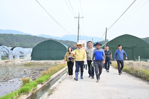 [금요저널] 백영현 포천시장은 지난 12일 일동면 노곡리에서 추진되는 ‘밥쌀용 고품질벼 신품종 생산 시범’ 사업장에 방문해 진행상황을 점검하고 지역농업인을 격려하며 현장목소리를 청취했다.