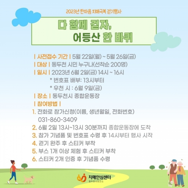 [금요저널] 동두천시치매안심센터는 오는 6월 2일 동두천 종합운동장에서 치매 극복을 위한 ‘다 함께 걷자, 어등산 한 바퀴’ 행사를 개최한다.
