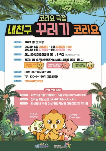 코리요 극장은 6월 20일부터 23일 6월 27일부터 30일까지 총 8회, 화성시어린이문화센터 아이누리극장에서 진행된다.
