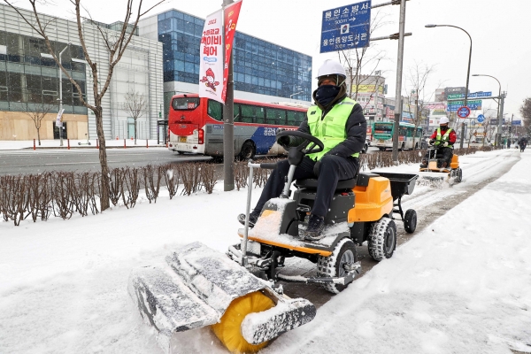 이 시장은 “주요 도로에 대한 제설은 꼼꼼한 대책을 수립해 체계적으로 진행하고 있지만 즉각적인 제설이 어려운 비탈길이나 보행로는 빙판이 되는 경우가 있어 보도용 제설기를 긴급 도입해 큰 효과를 보고 있다”고 말했다.