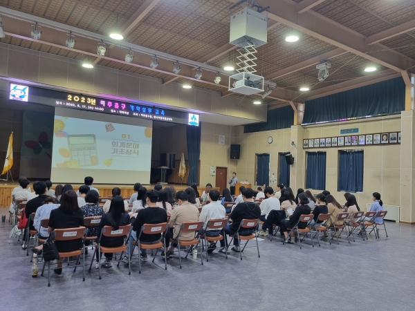 교육은 회계 관계 공무원들의 업무 역량 강화를 위해 한국지방재정공제회가 추진하는 2023년 지자체 계약분야 방문교육 사업에 선정된 것으로 계약 실무 경험이 풍부한 현직 지자체 공무원이며 전남 순천시 회계·계약 분야 전문관인 정용범 팀장을 강사로 초청해 회계 기초상식, 예산 및 지출 실무, 계약 실무 등을 교육했다.